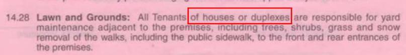 This is part of the purchased standard contract which addresses all types of housing. The section states that it is applicable to houses and duplexes (see above), however this is Apartment Condo, an therefore the entire section does not apply to you and you can disregard it.